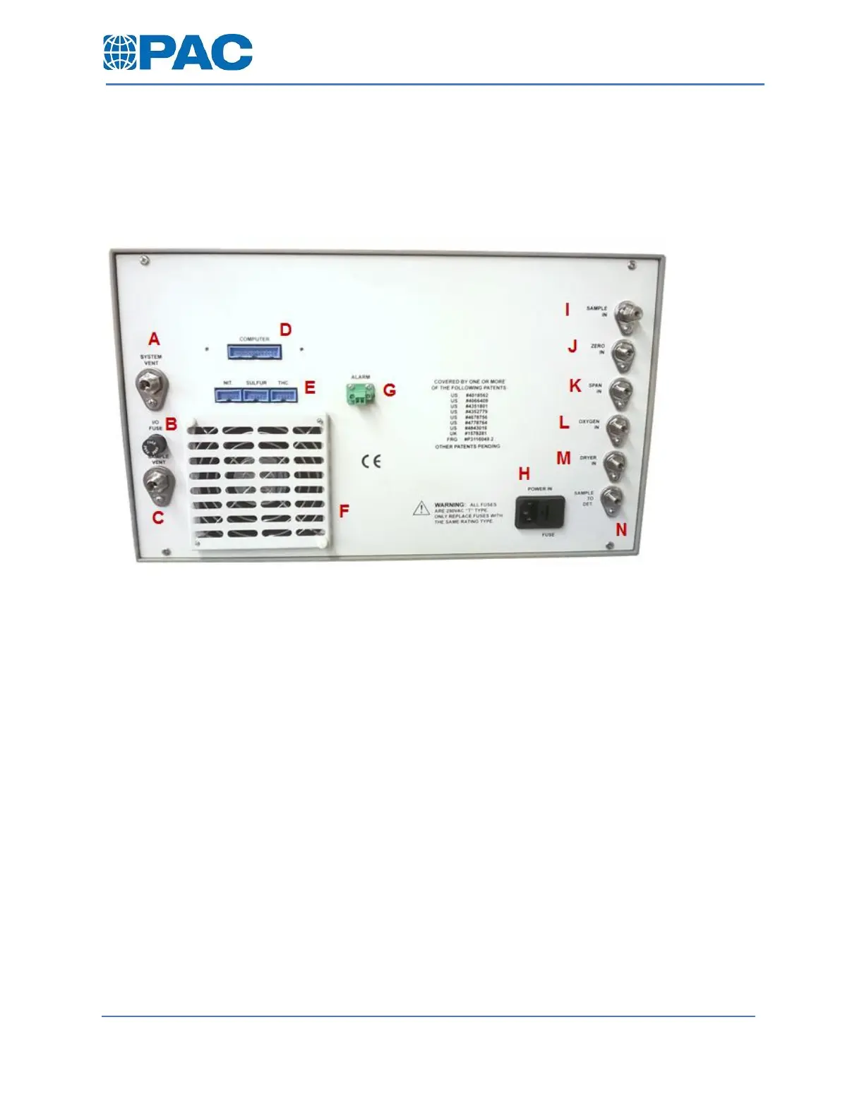K. Zero/Span switch: Selects one of the cal. streams, either the zero stream or the span stream, for