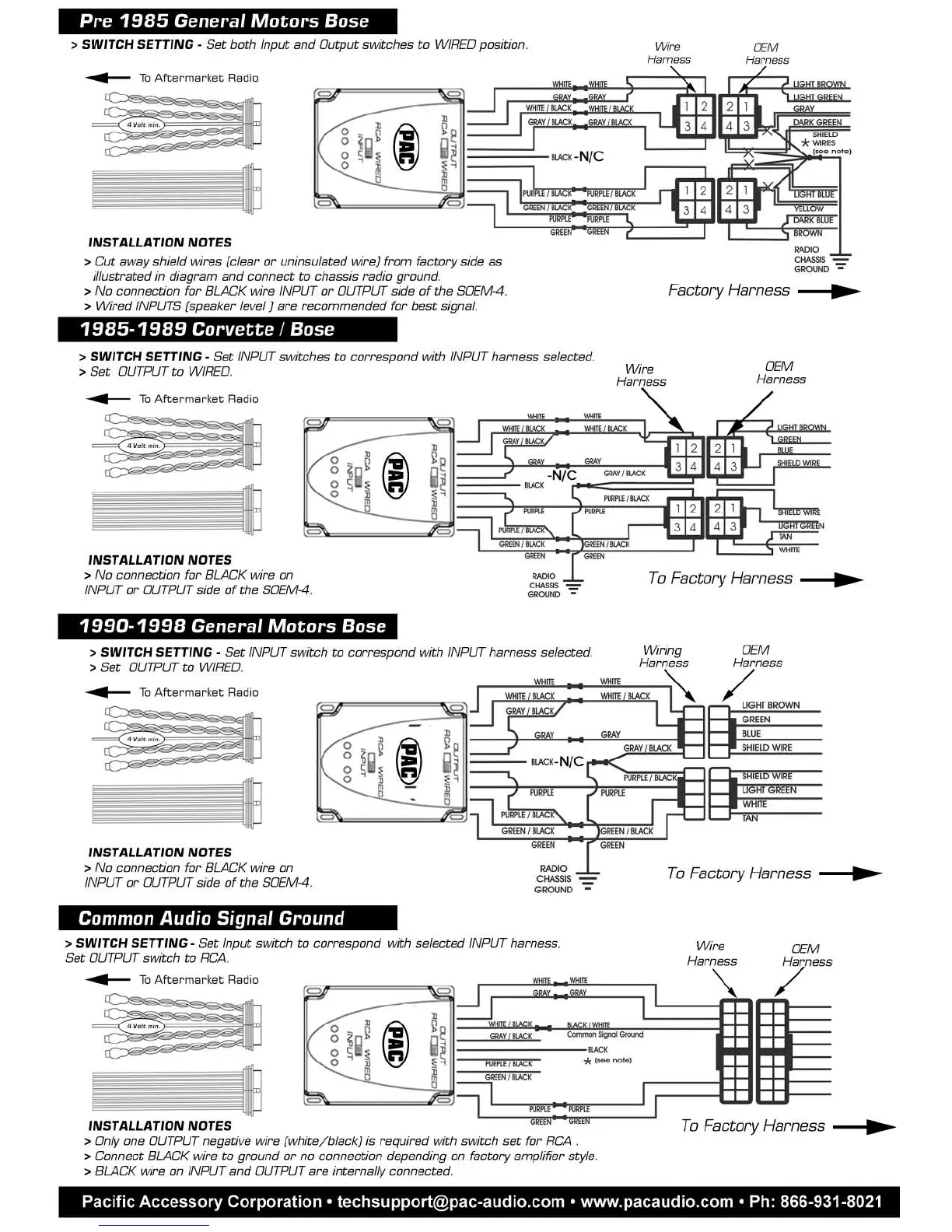 PAC SOEM-4 - Vehicle Specific Wiring and Settings; Pre 1985 General Motors Bose Wiring; 1985-1989 Corvette Bose Wiring; 1990-1998 General Motors Bose Wiring