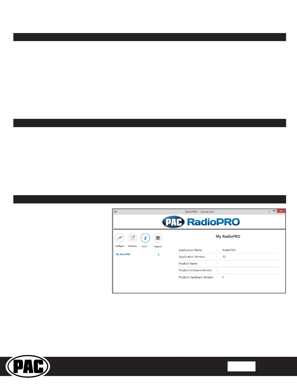 The interface must be connected to the vehicle when using the following features of the RadioPRO App: