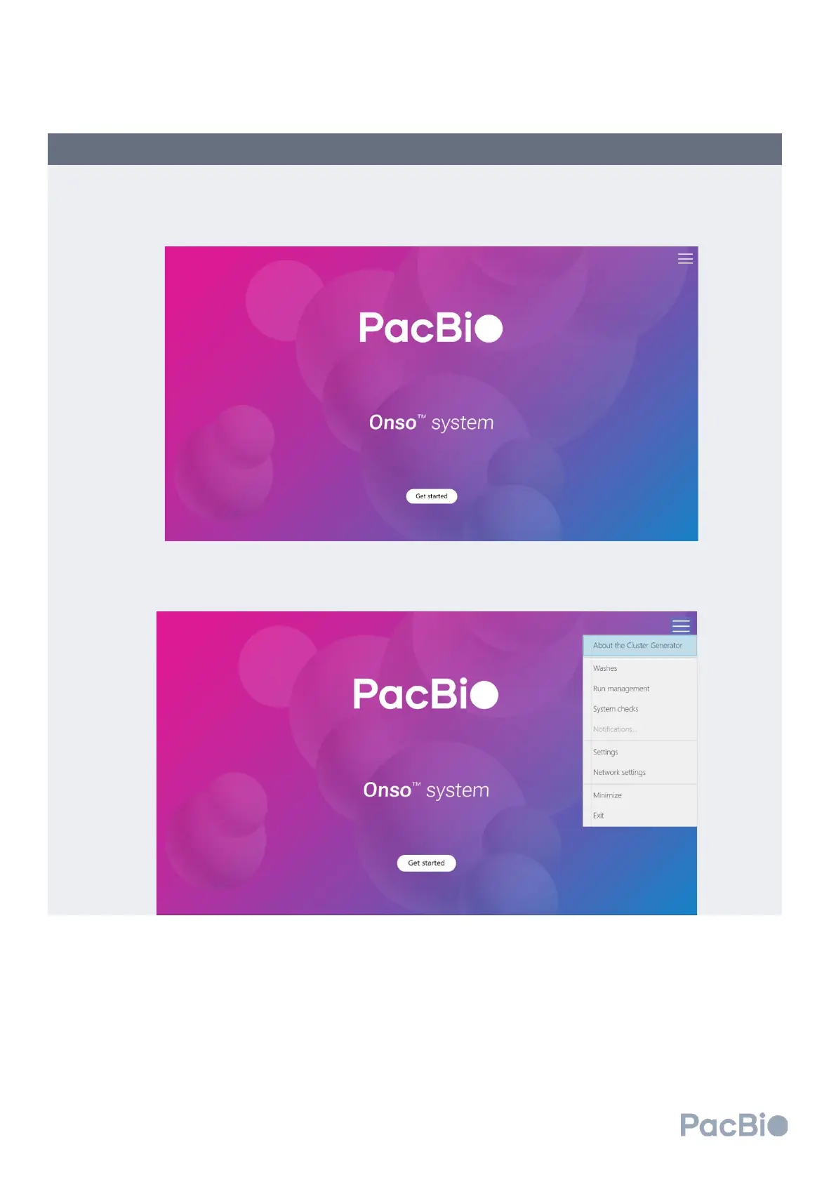 • If the instrument is on, and at the home screen, select “Get started” to begin.