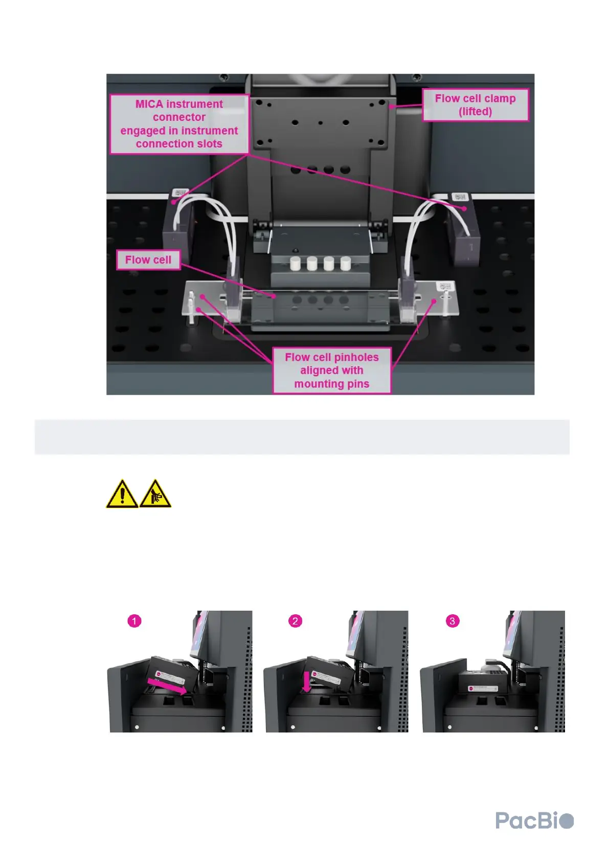 Do not place your hands or fingers in or between the reagent drawer and cluster