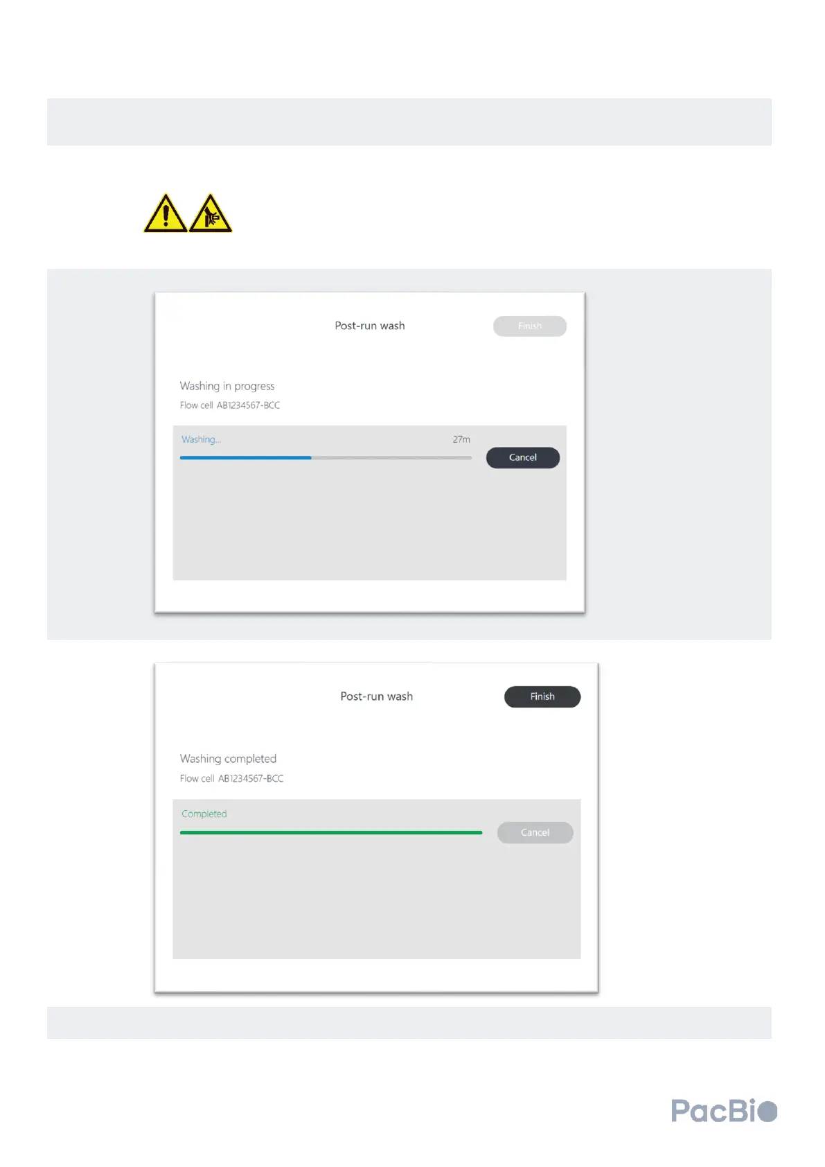 Following the wash, select “Finish” on the completed screen to bring the software back to the home screen.