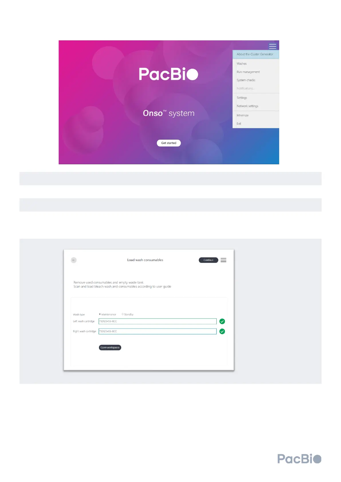 Close the reagent door and the workspace door. Select “Continue” to enter the pre-wash checks screen.