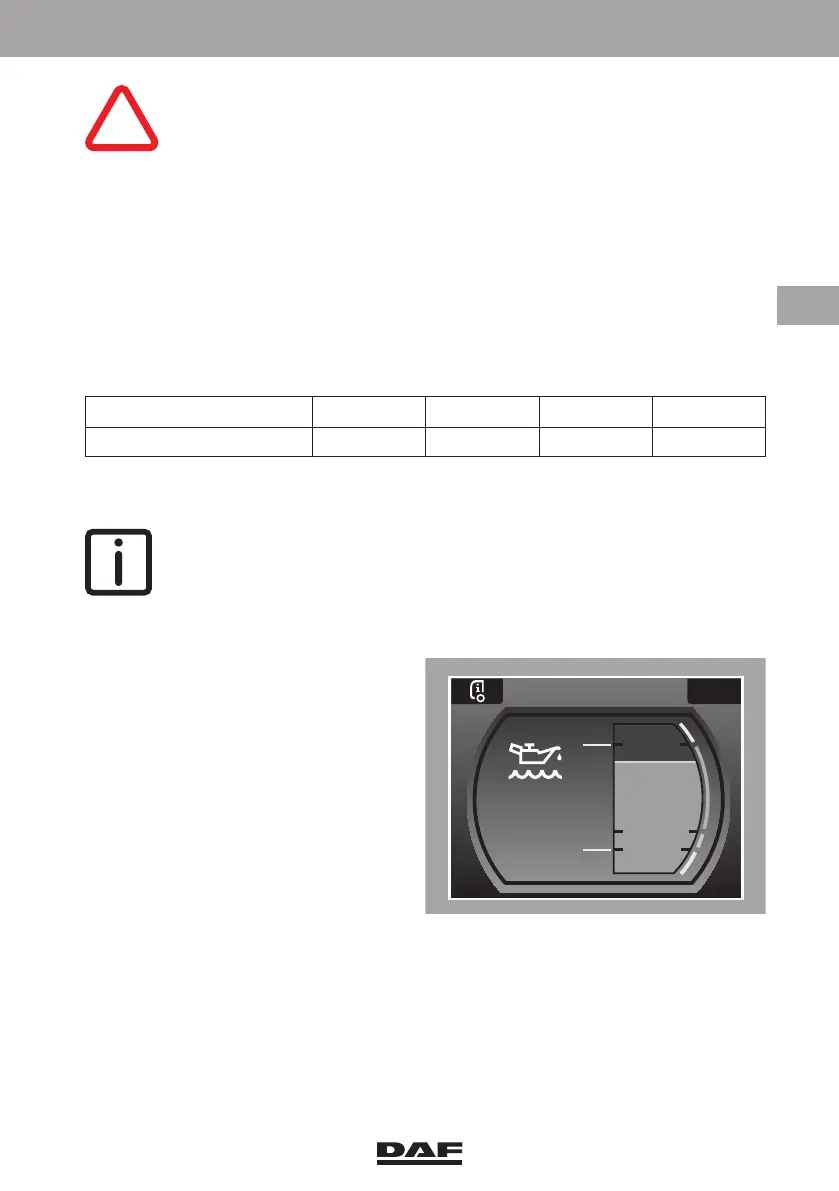 If the warning is yellow, correct the level (level too high) or add 5 litres of oil (oil level
