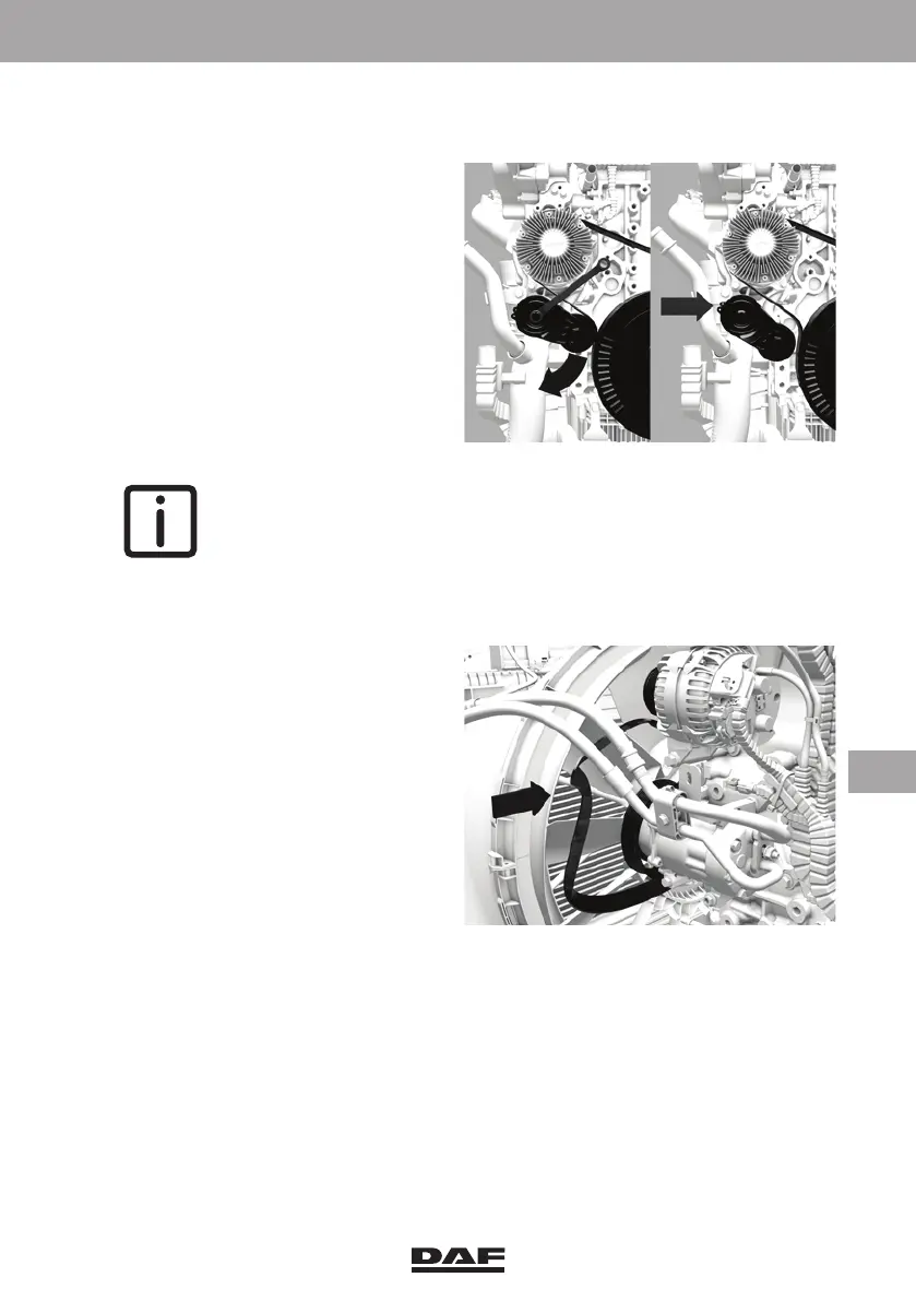 5. Slacken the poly-V-belt so that it can be removed from the pulleys.