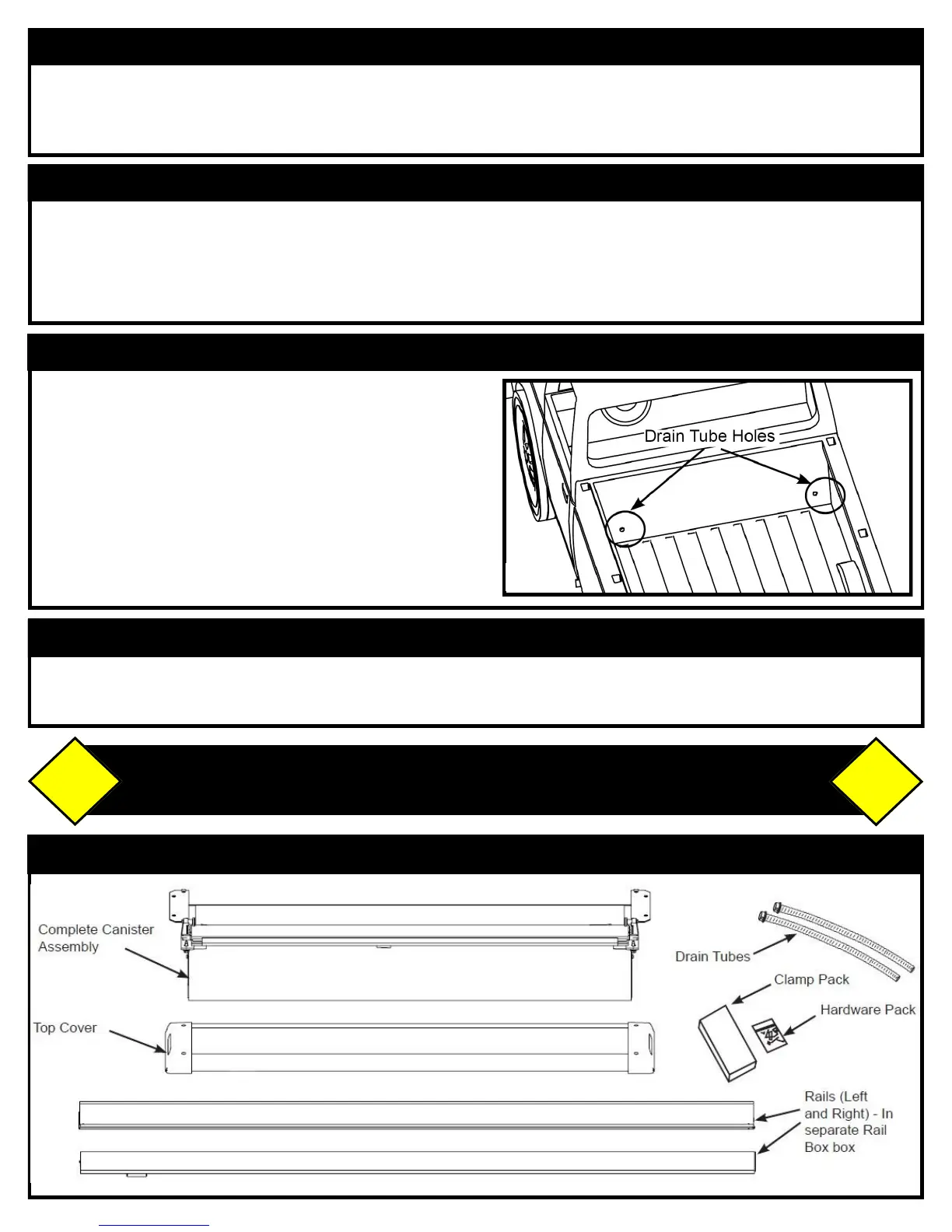 Cover, Canister, Clamp Pack, Hardware Pack and Drain Tubes from the canister box. Remove the rails from the rail box (see