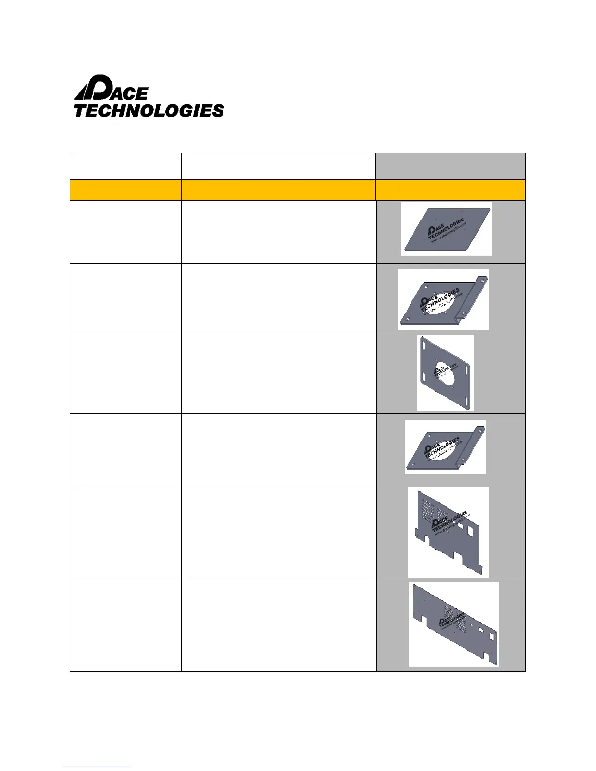 Part no. Description Images
