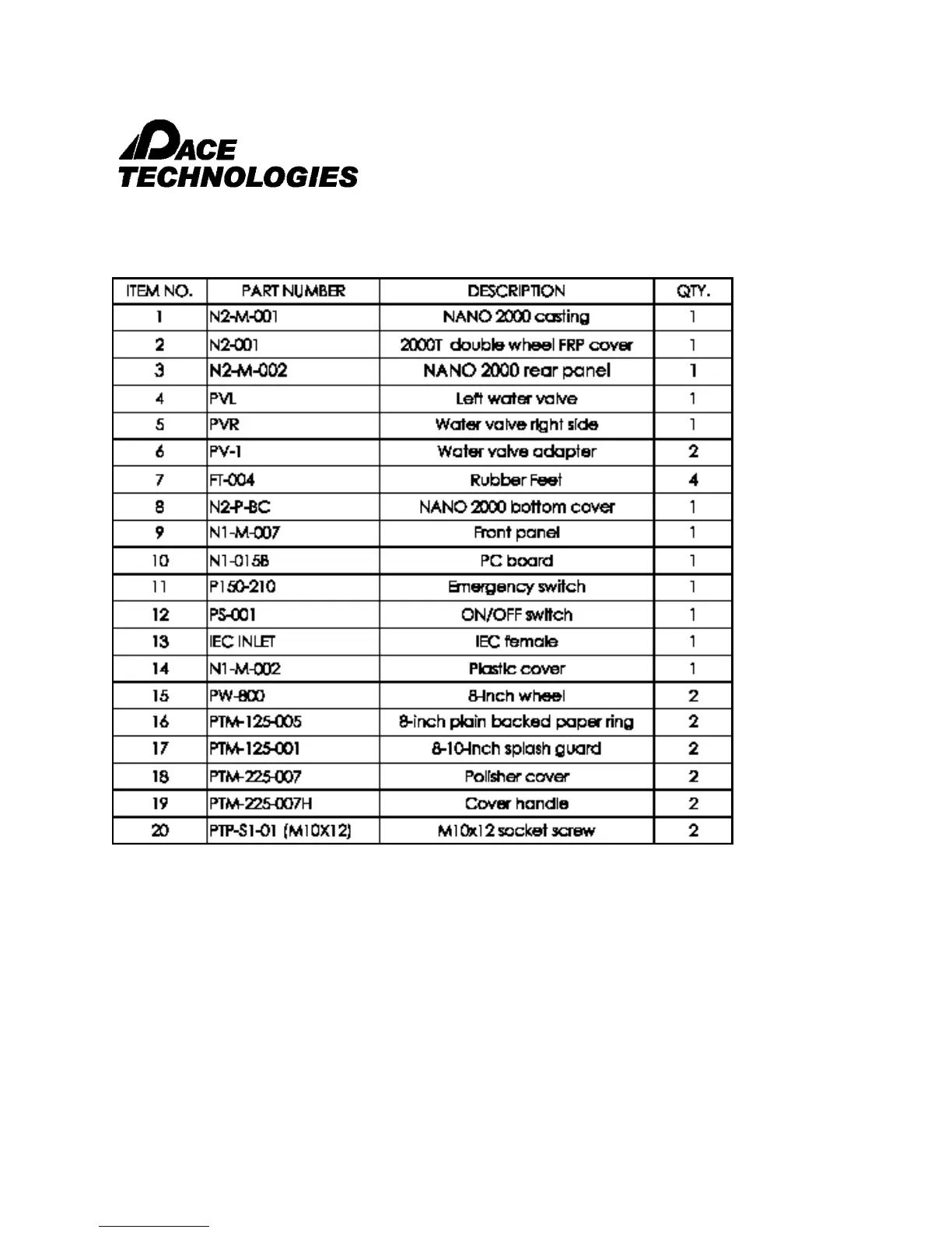 9.0 Schematics (NANO 2000T case assembly)