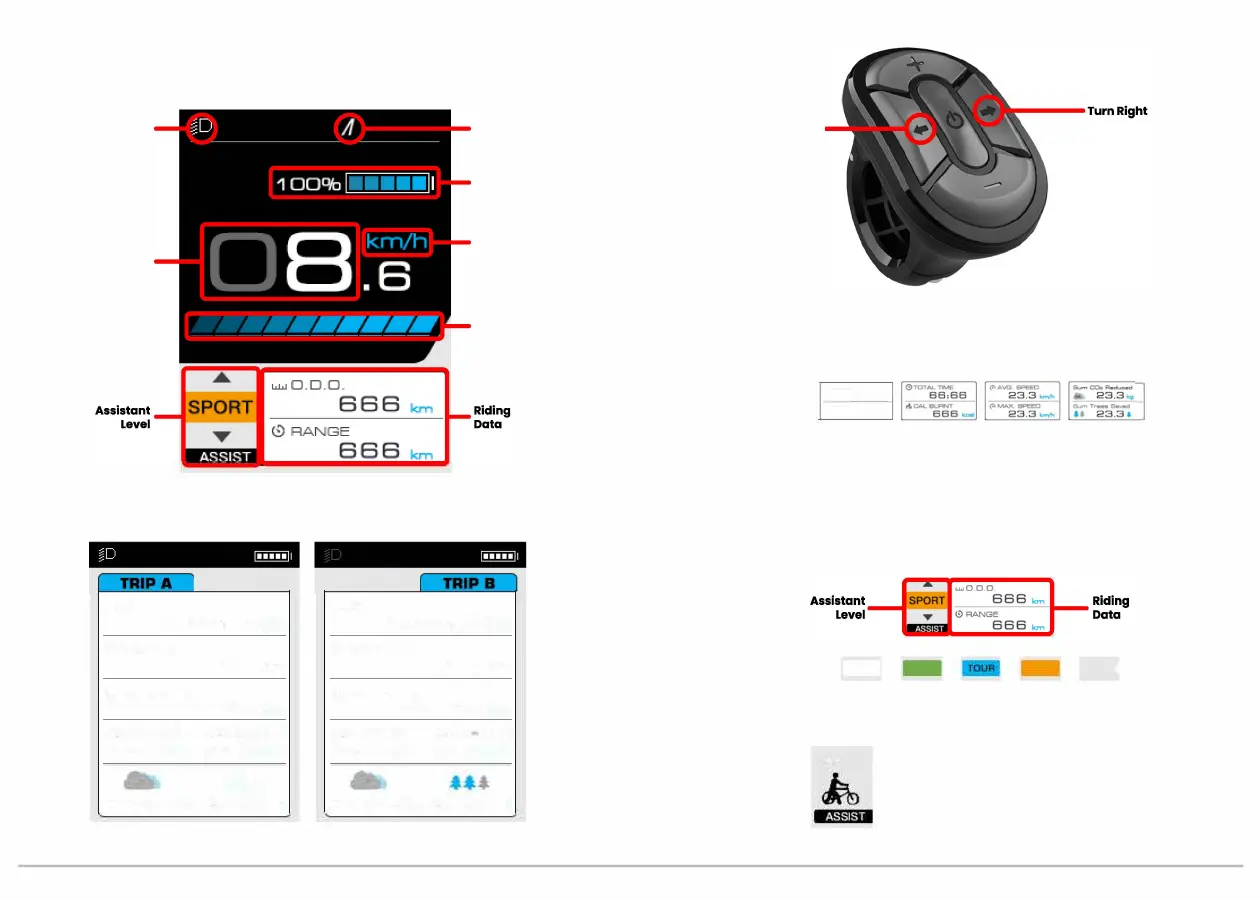 Pace 500.3 - Display and Controls Overview; Home Page Elements; Riding Data Pages; Trip A;B Pages