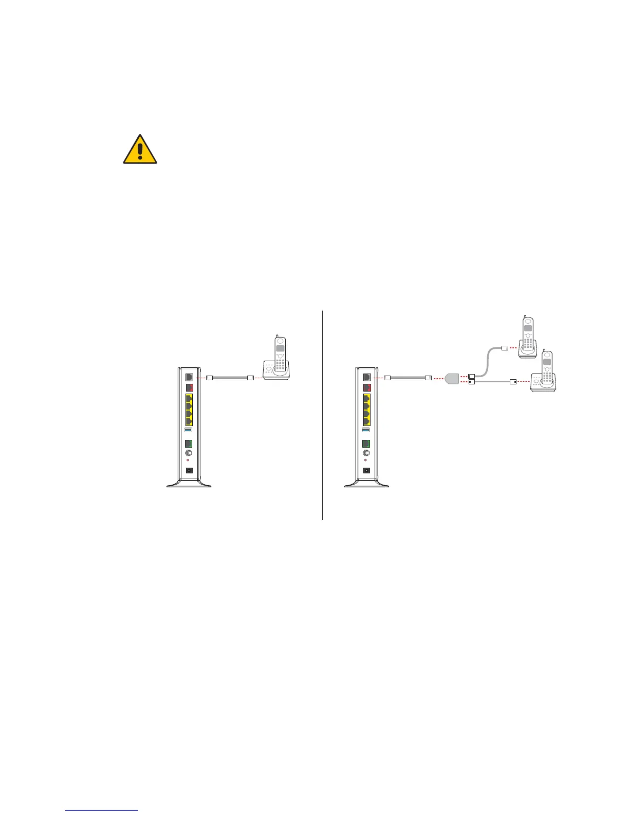 WARNING: Do not connect the VoIP lines to your current home telephone wiring,