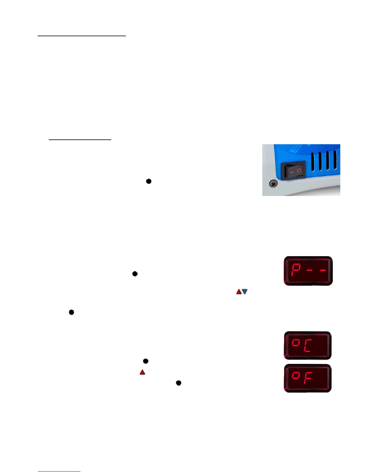 4. The Digital Display now shows the stored default Temperature Scale, either °C or