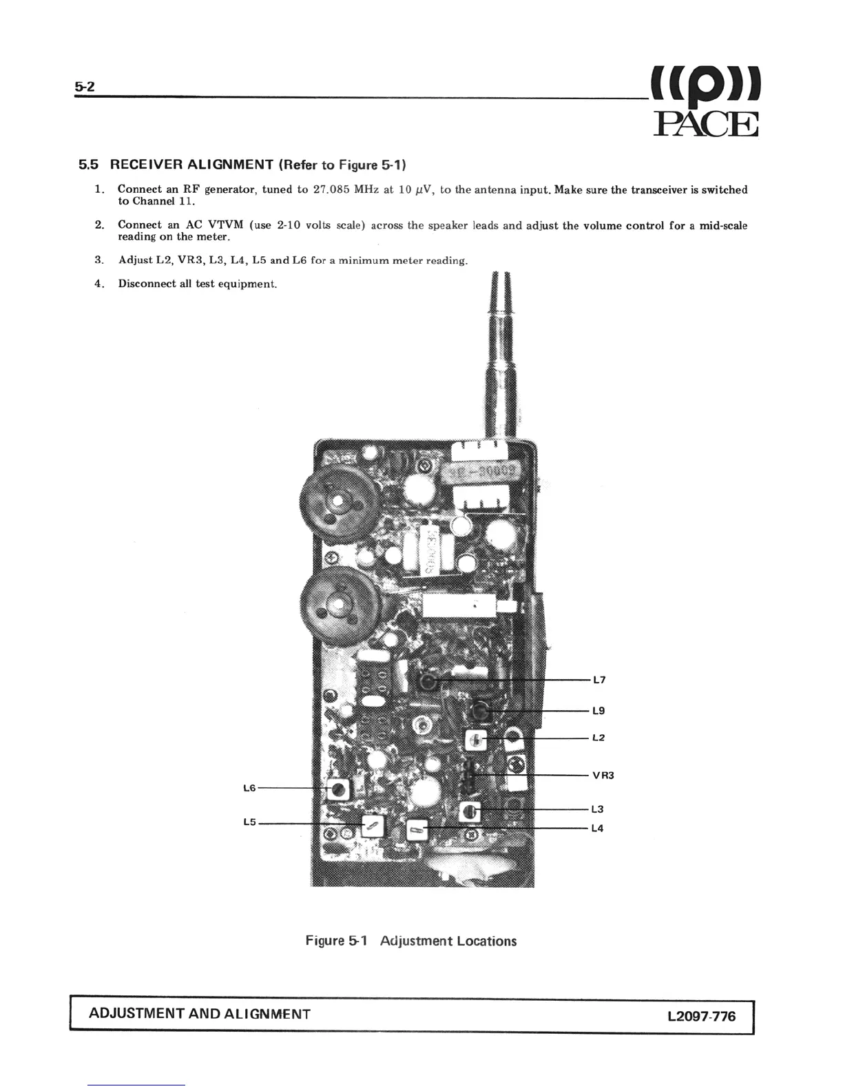 Pace CB 110 - Receiver Alignment; Adjustment Locations