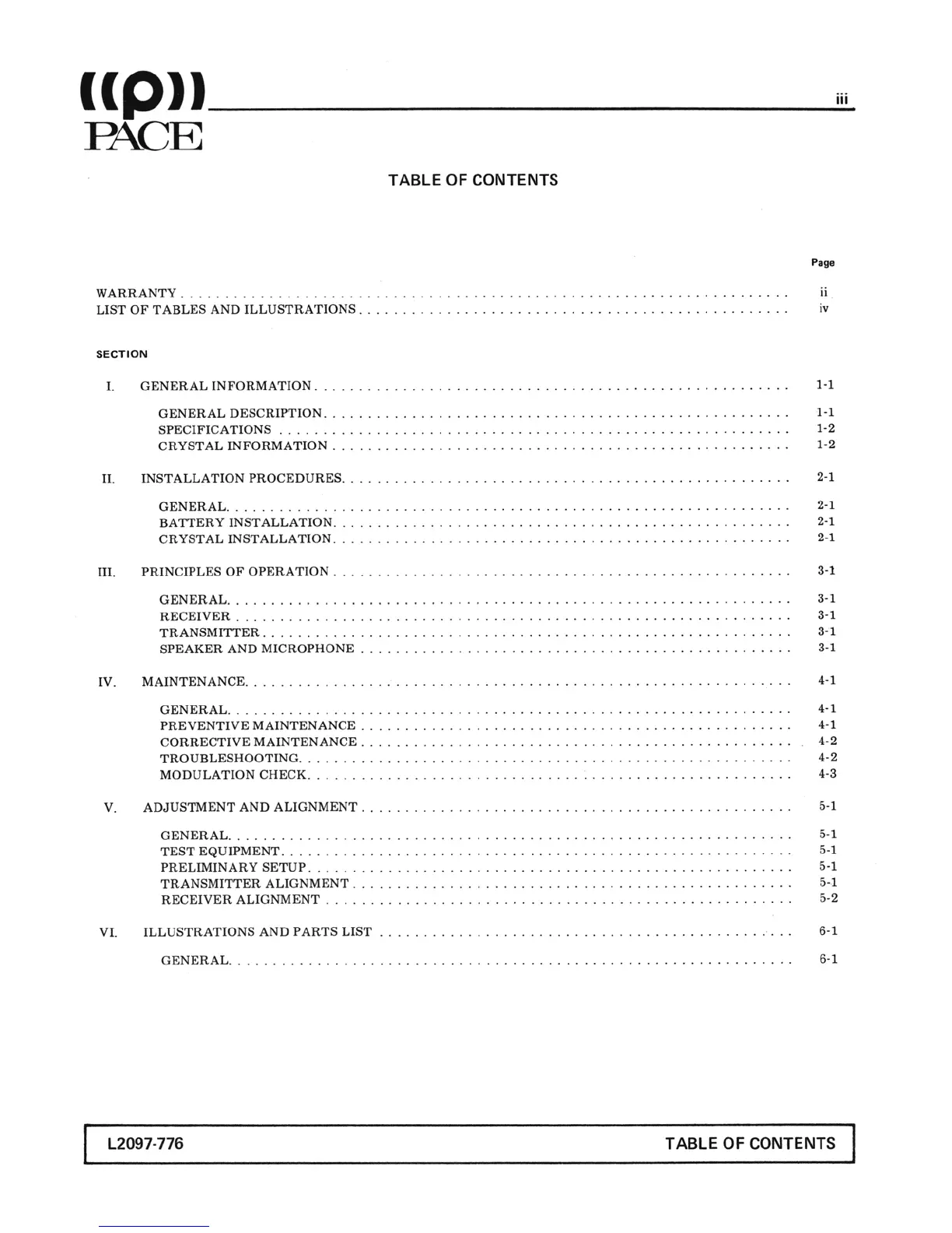 Pace CB 110 - Table of Contents