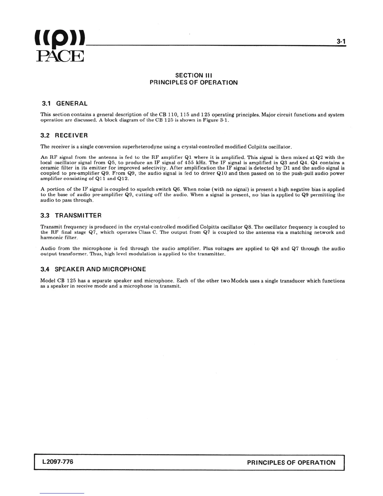 Pace CB 110 - Principles of Operation; Receiver; Transmitter; Speaker and Microphone