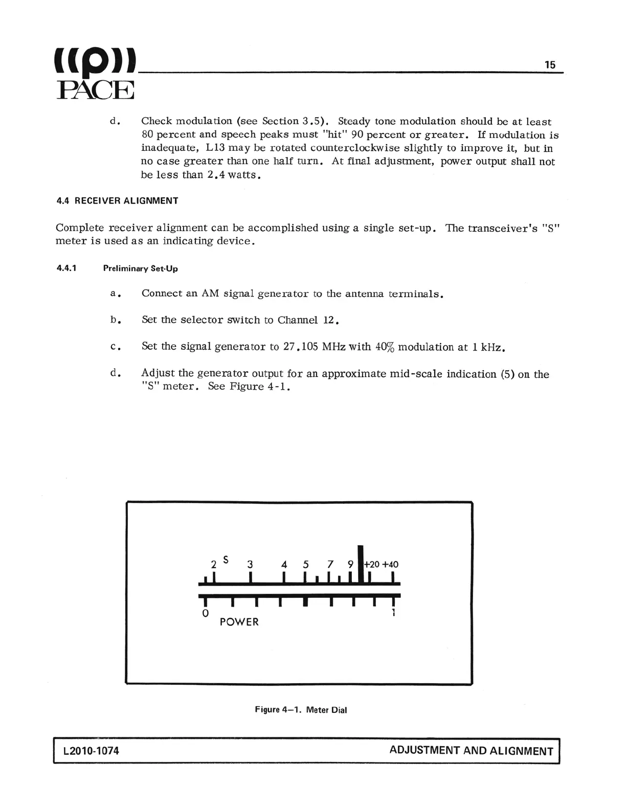 Pace CB 123A - Receiver Alignment; Receiver Preliminary Set-Up