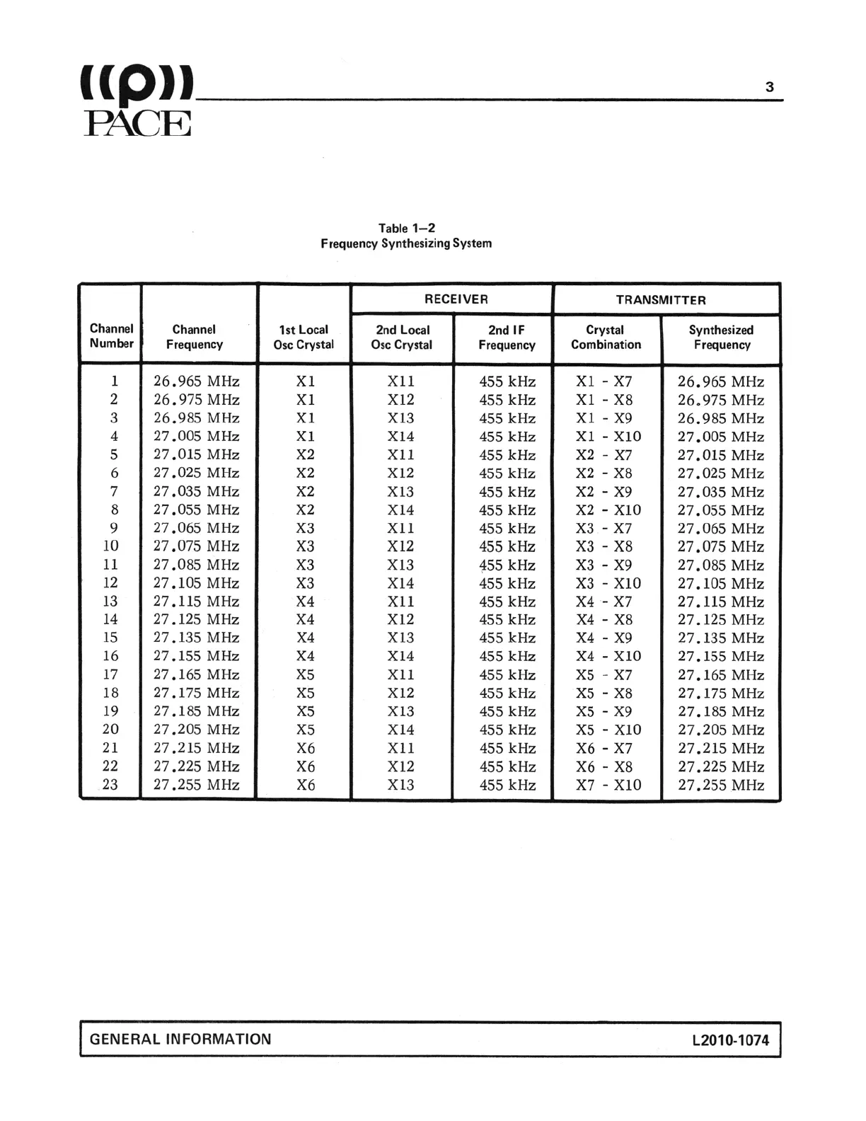 Pace CB 123A - Frequency Synthesizing System