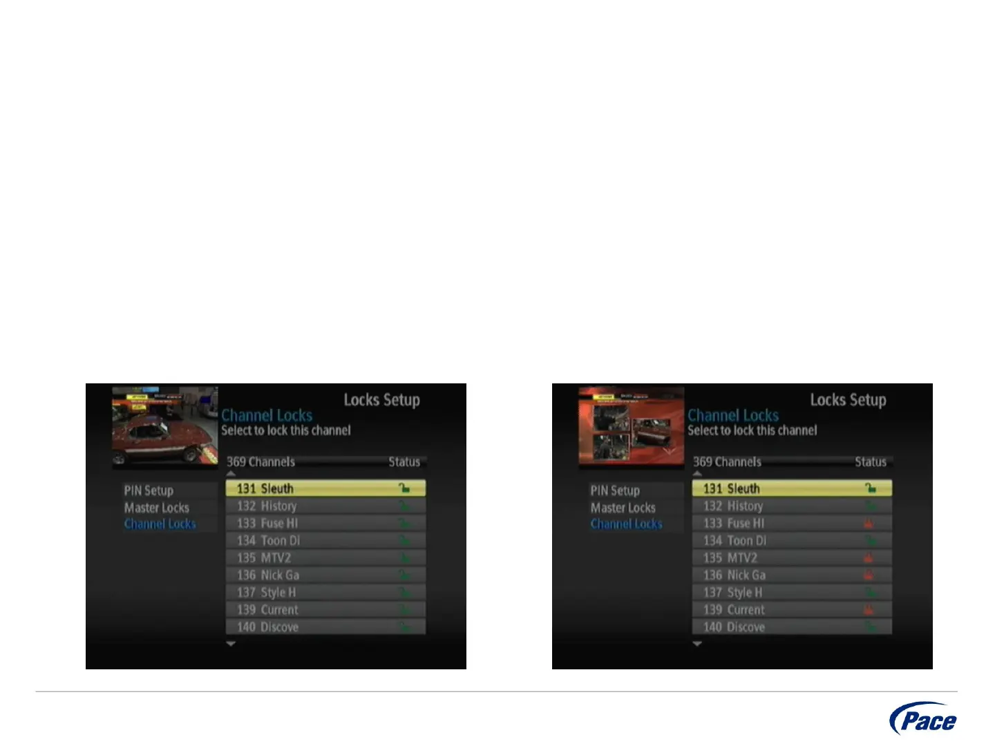 The Lock icon to the right of the channel will indicate the lock status