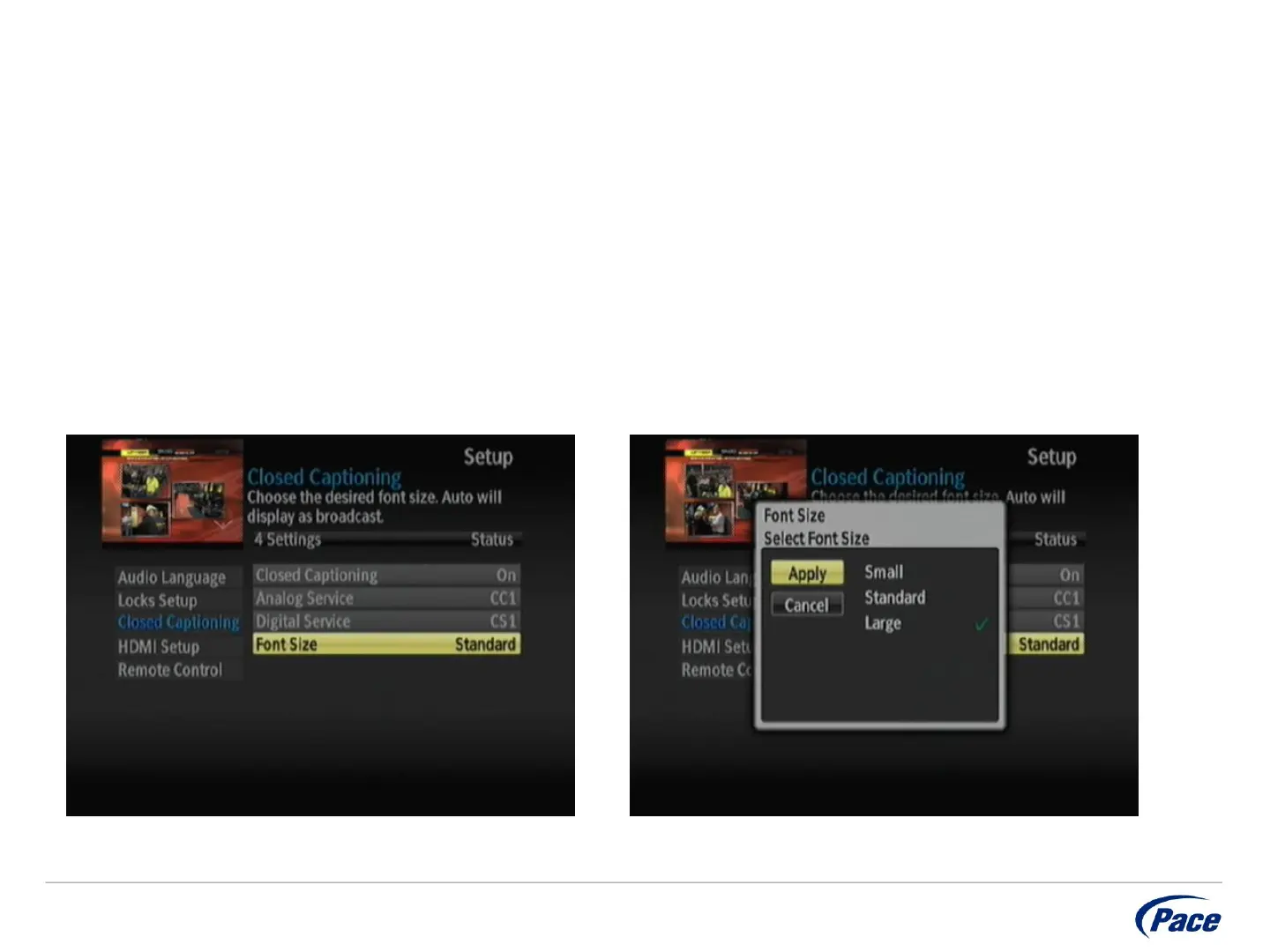 Closed Captioning Font Size