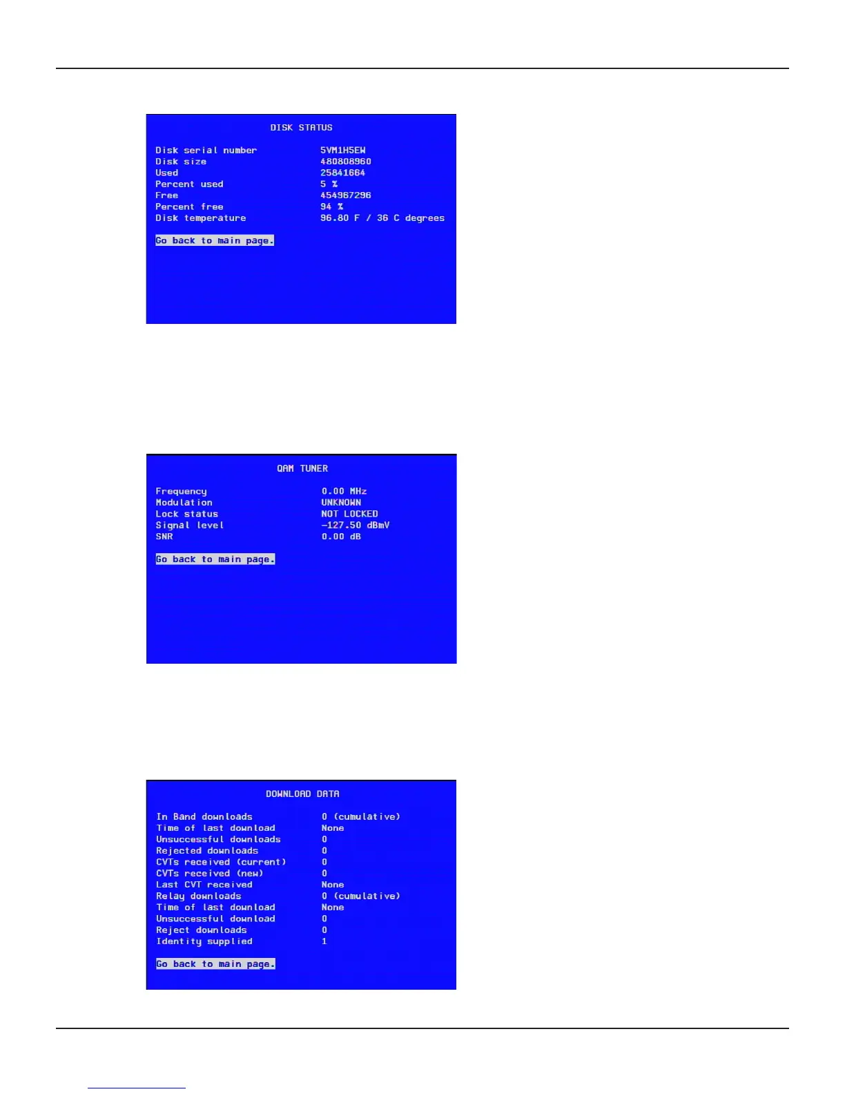 searches for software upgrades using this tuner and the screen shows the current status of the QAM tuner.