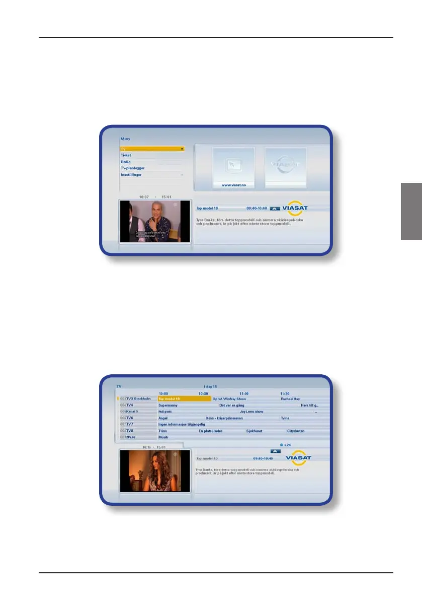 Når du viser TV-programoppføringene, ser du starttidspunktet og dagen øverst.