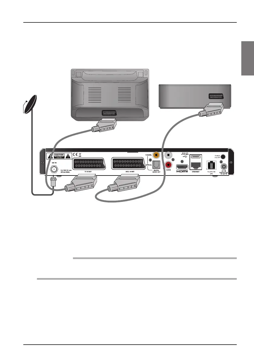 1. Anslut mottagaren till tv:n eller videon med den medföljande SCART-kabeln.