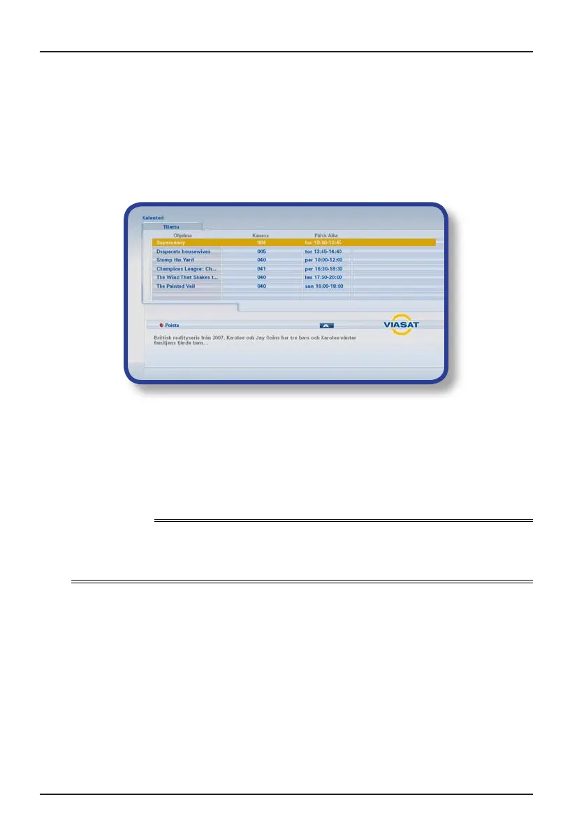 Kalenterin avulla voit suunnitella TV:n katselusi. Siinä näkyvät kaikki asettamasi