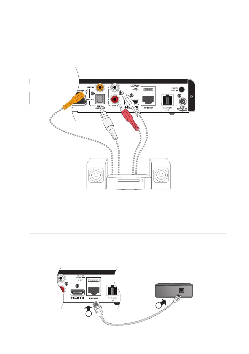 Stereoljudanläggningar kan anslutas enligt bilden. Om tv:n och/eller