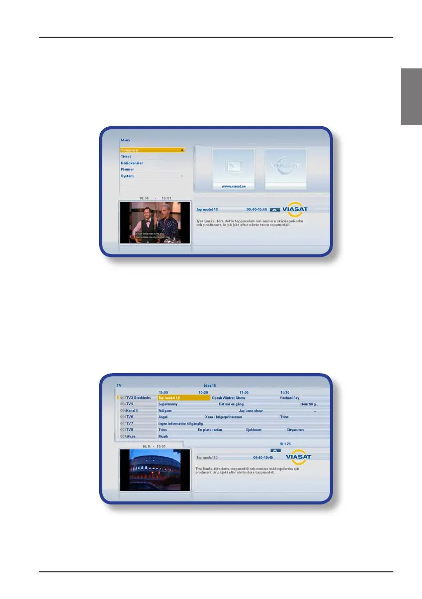 som Viasat Ticket och inställningsmenyerna för mottagaren.