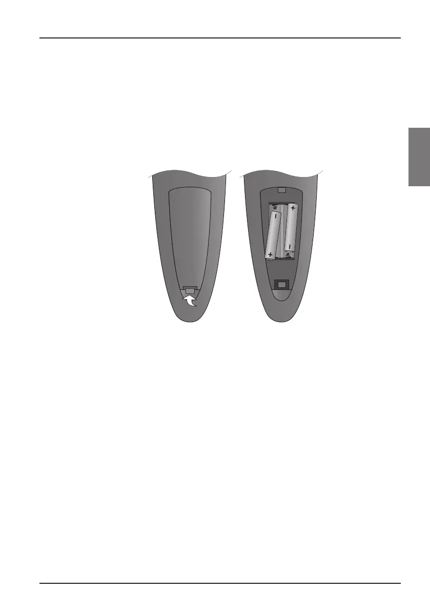 Før du kan bruge fjernbetjeningen, skal de to medfølgende AA-batterier sættes i på