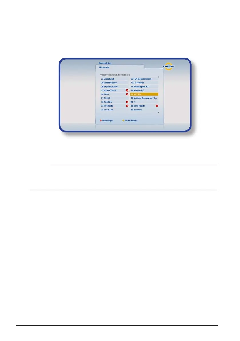 Sorter kanallisten ved at trykke på gul, markere den ønskede kanalkategori (Alle kanaler/Underhold-