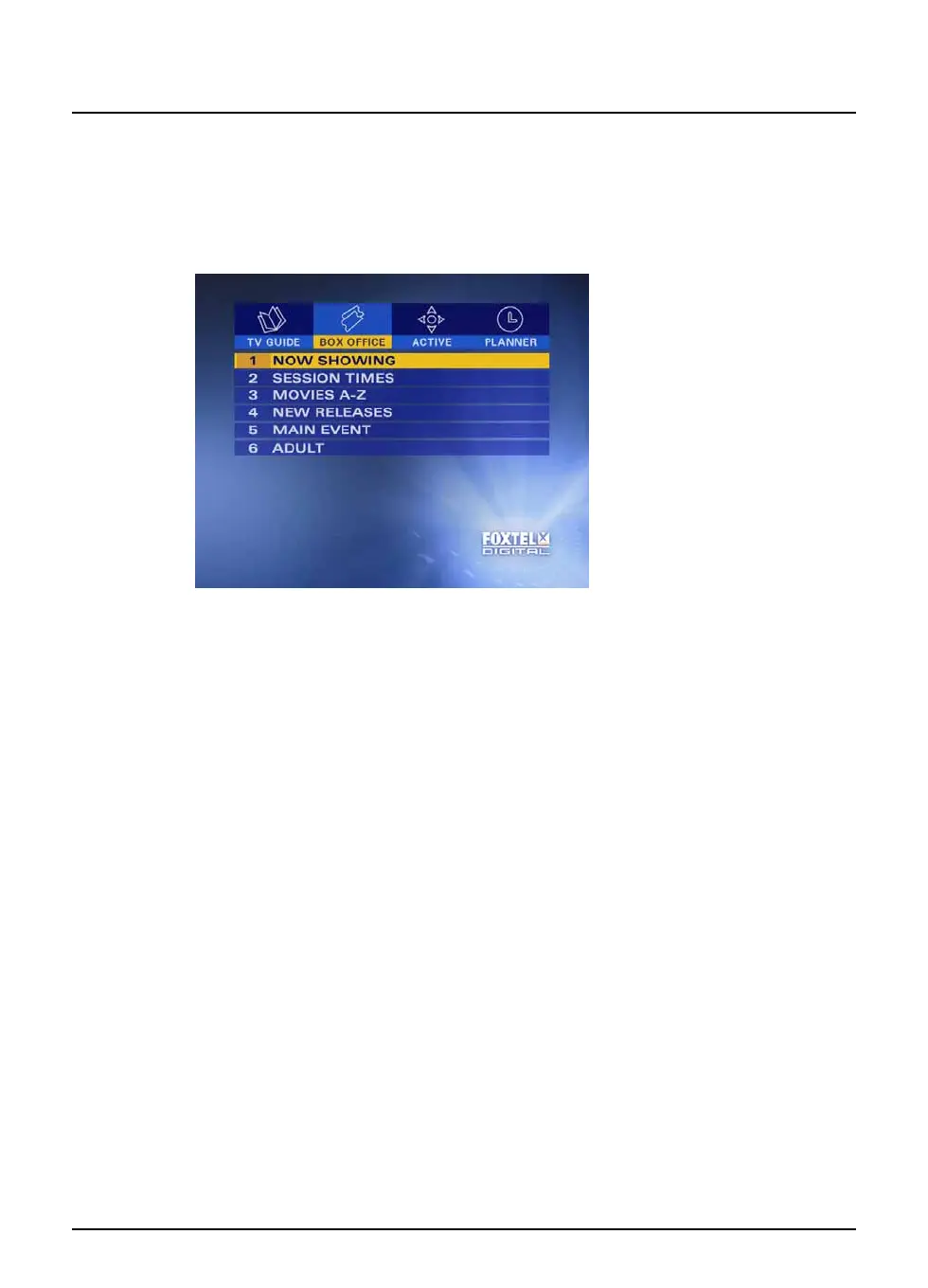 ◆ To look at the FOXTEL Box Office screen, press box office.