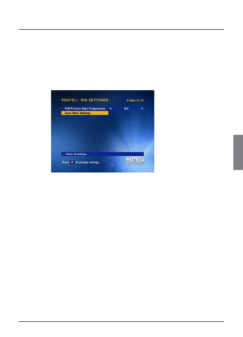 The FOXTEL PIN Settings screen lets you choose whether or not you