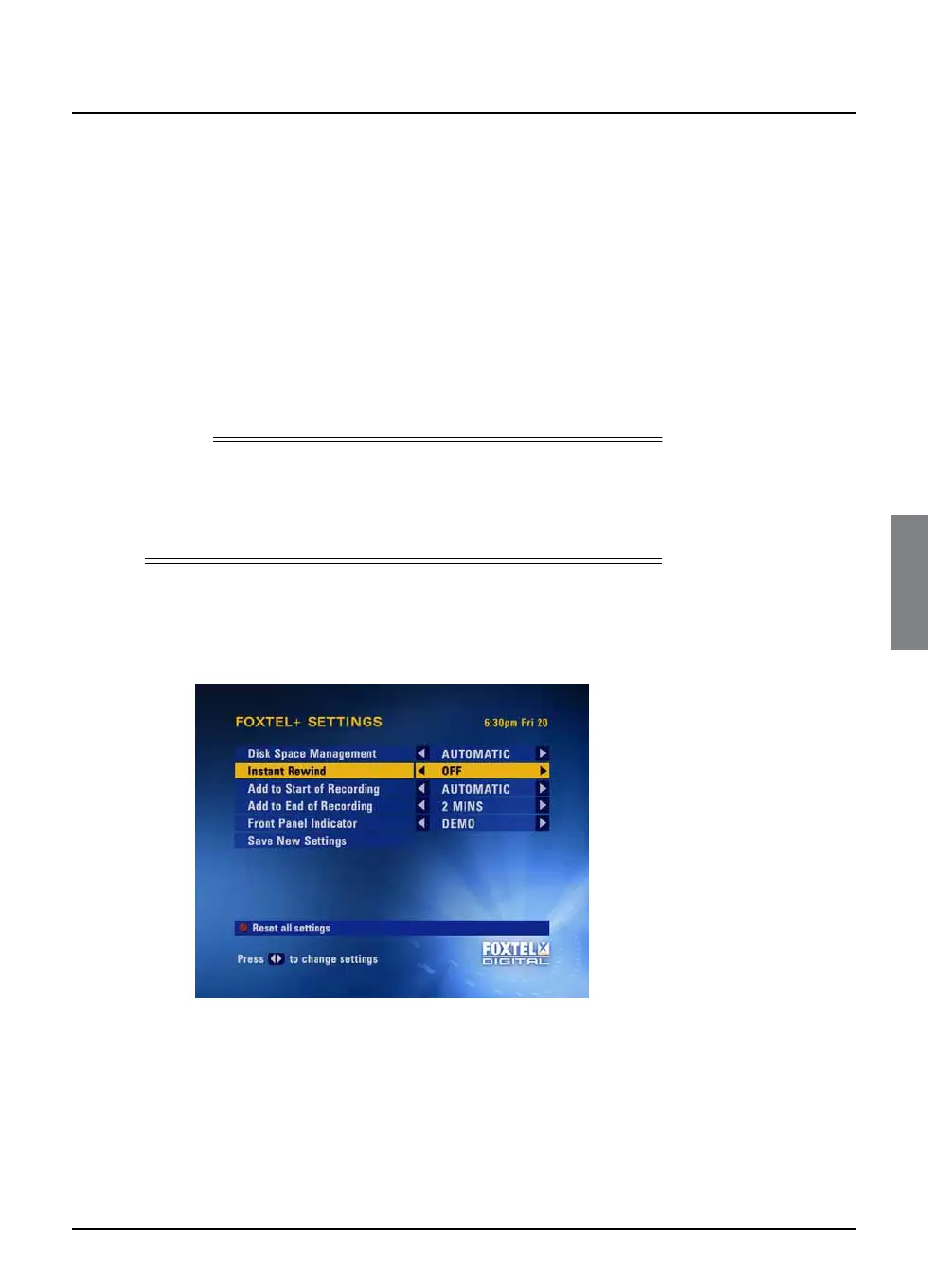 1. On the Setup screen, highlight ‘FOXTEL Settings’ and then press