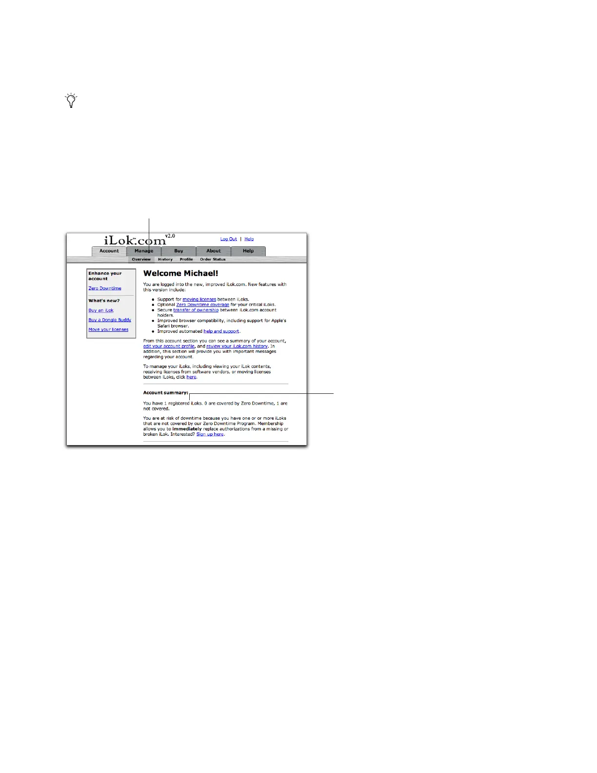 If licenses have been placed into your iLok.com account, a message indicating this appears at the bottom of the iLok Wel-