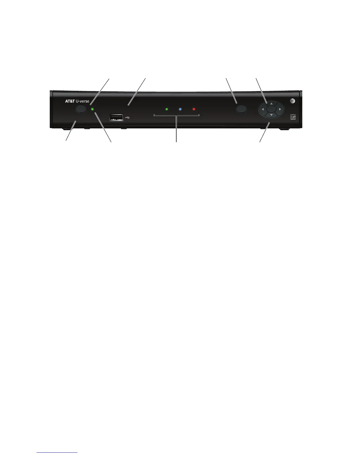 Lights green when the set-top box is powered on. Blinks when receiving input from the