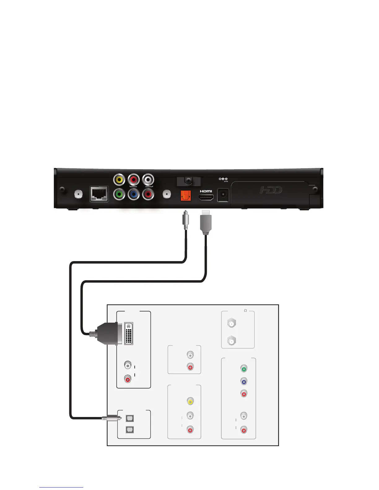 HDMI-to-DVI cable and a separate digital optical audio cable.