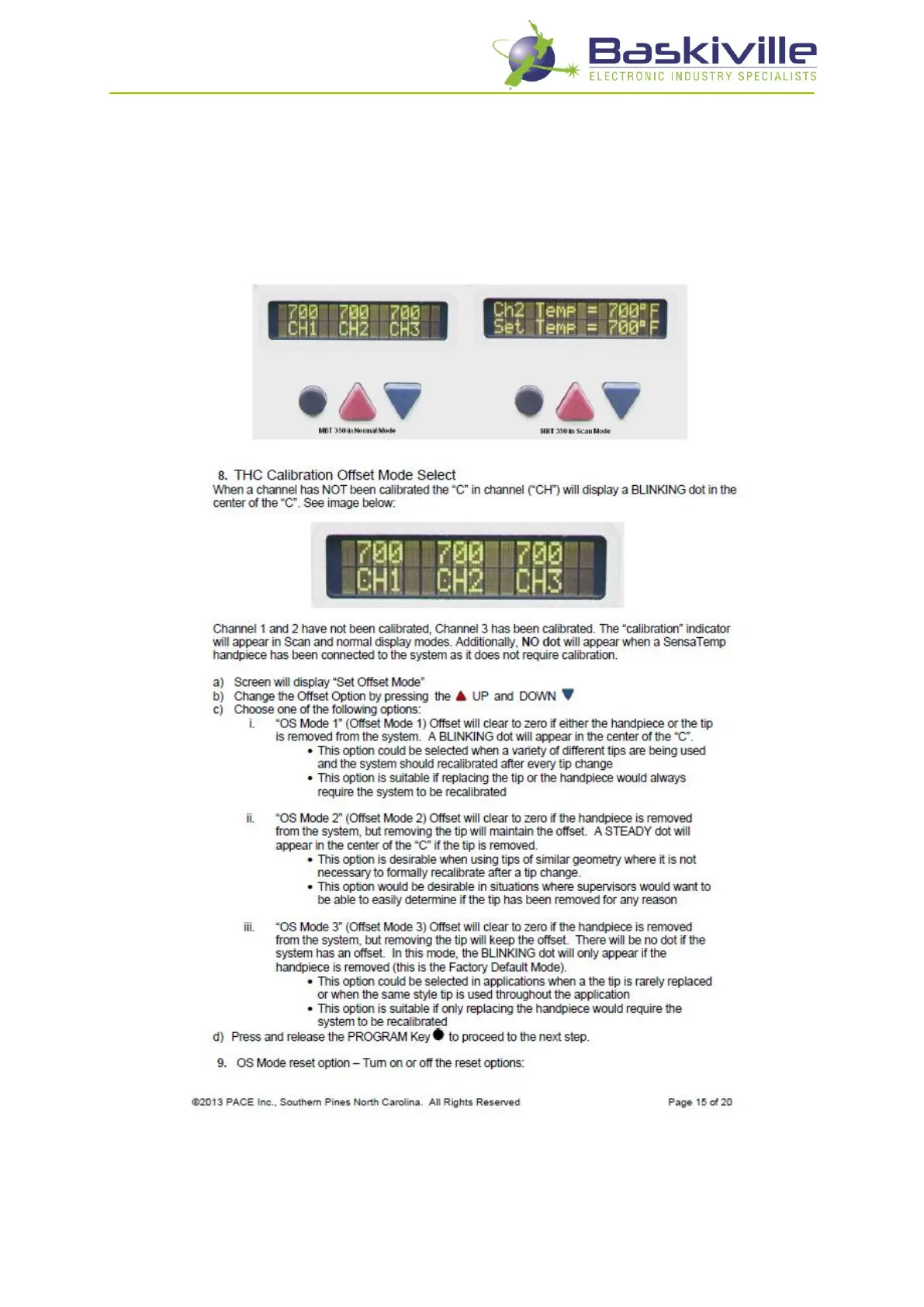 Pace MBT 350 - Calibration Offset Modes; THC Calibration Offset Mode Select