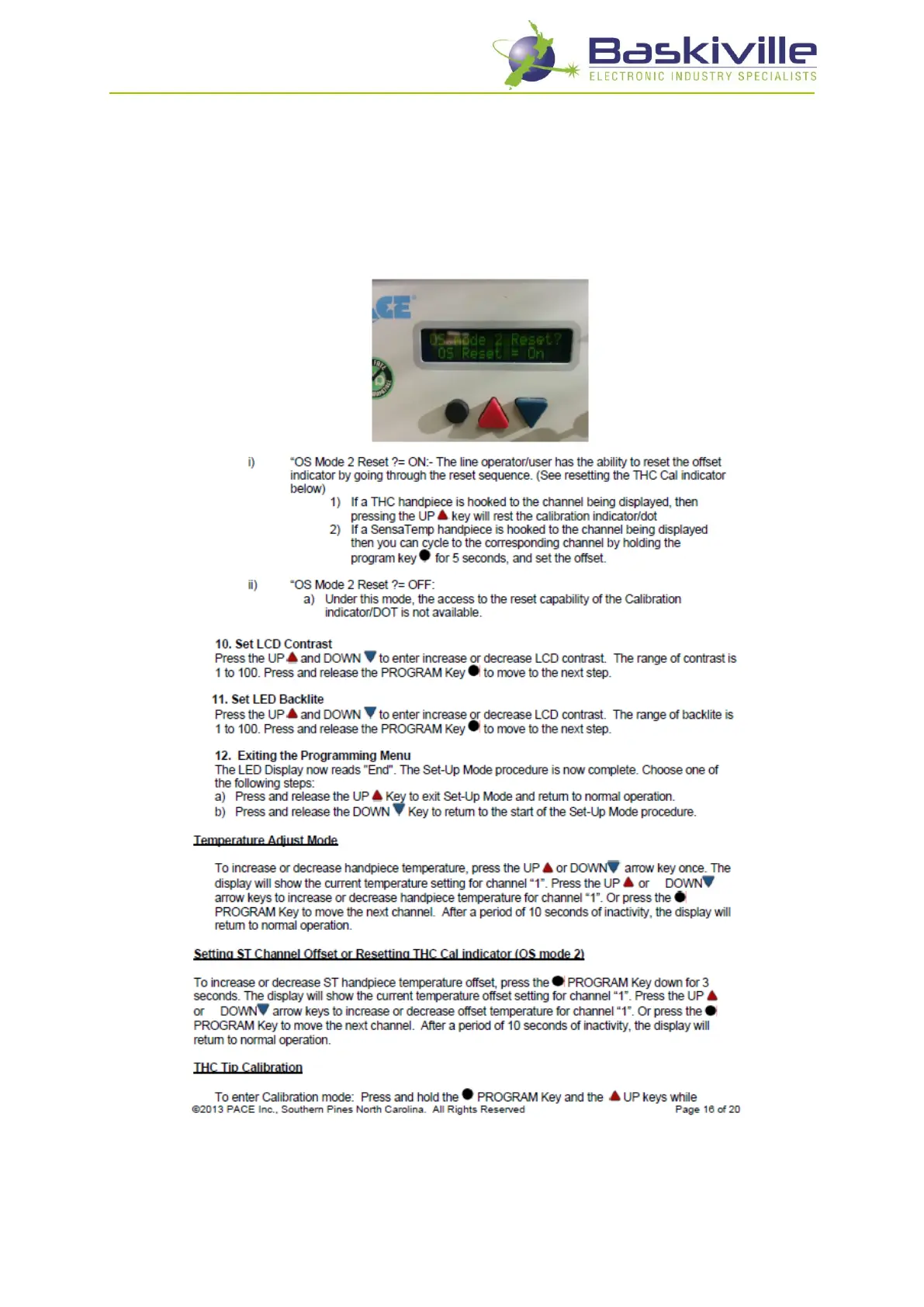 Pace MBT 350 - Advanced Settings and Calibration; OS Mode 2 Reset Configuration; LCD Contrast and Backlight; Exiting Programming Menu