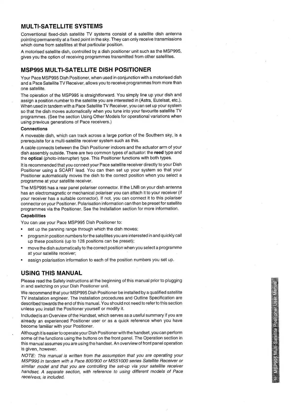 Pace MSP 995 - MULTI-SATELLITE SYSTEMS OVERVIEW; MSP995 Dish Positioner Introduction; How to Use This Manual
