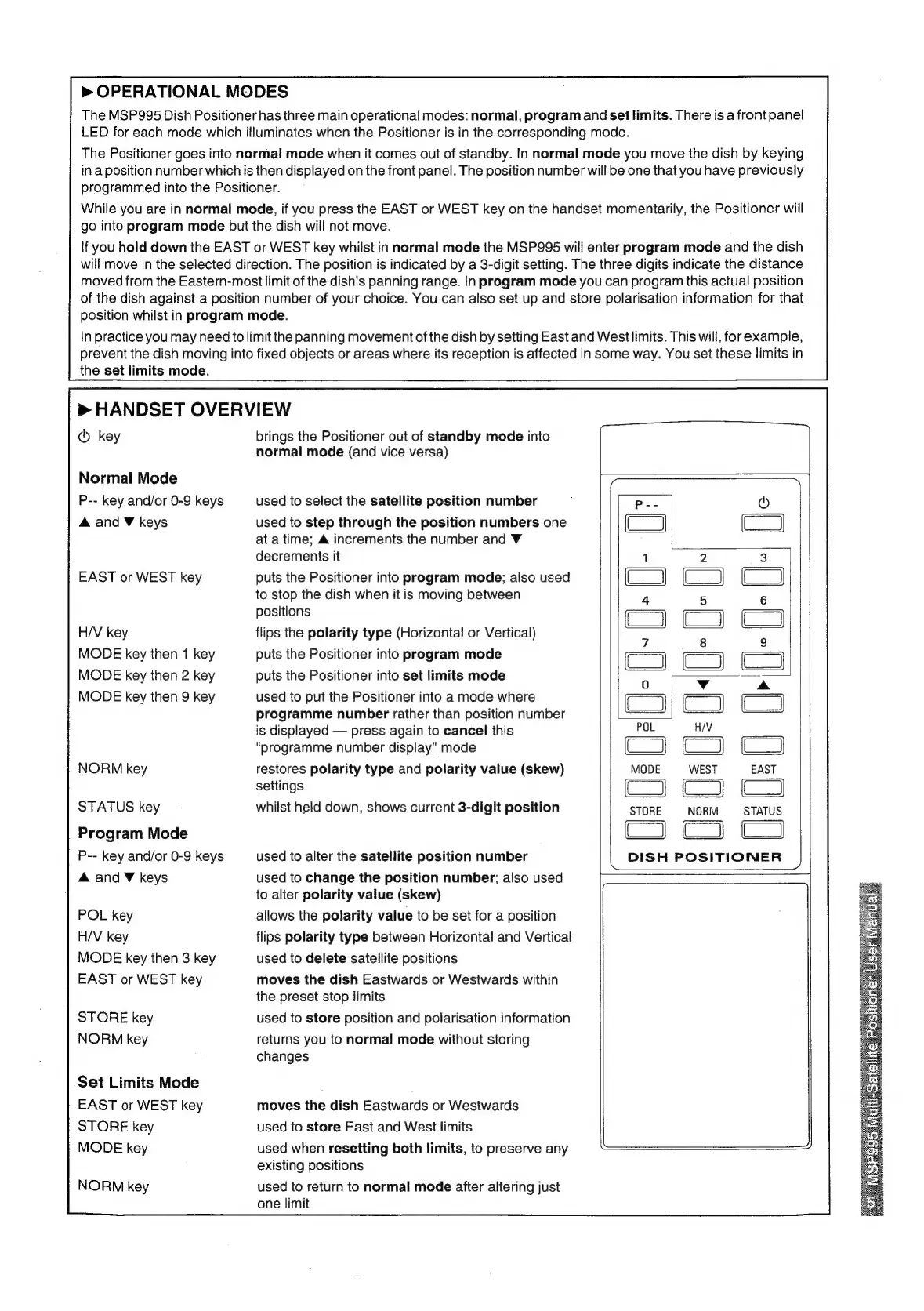 Pace MSP 995 - OPERATIONAL MODES AND HANDSET; Operational Modes Explained; Handset Overview
