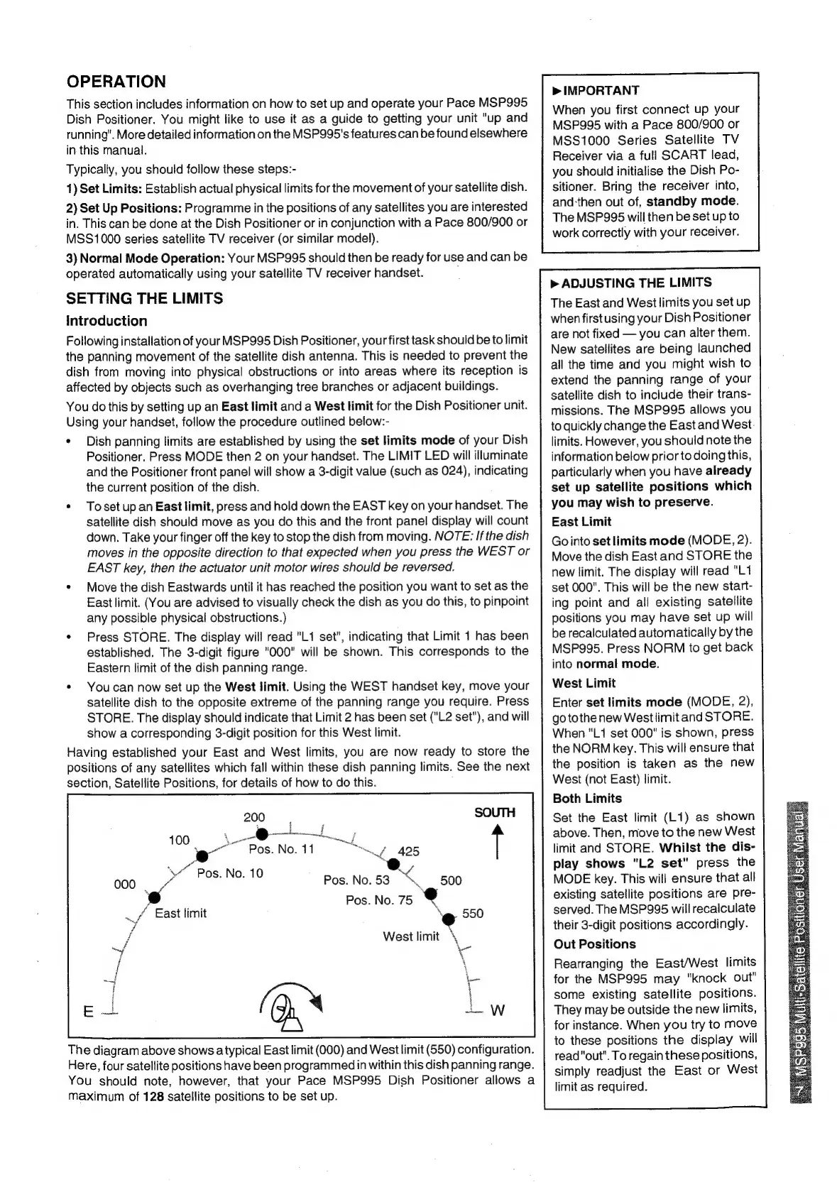 Pace MSP 995 - SETTING DISH MOVEMENT LIMITS; Adjusting East and West Limits; Handling Out-of-Limit Positions