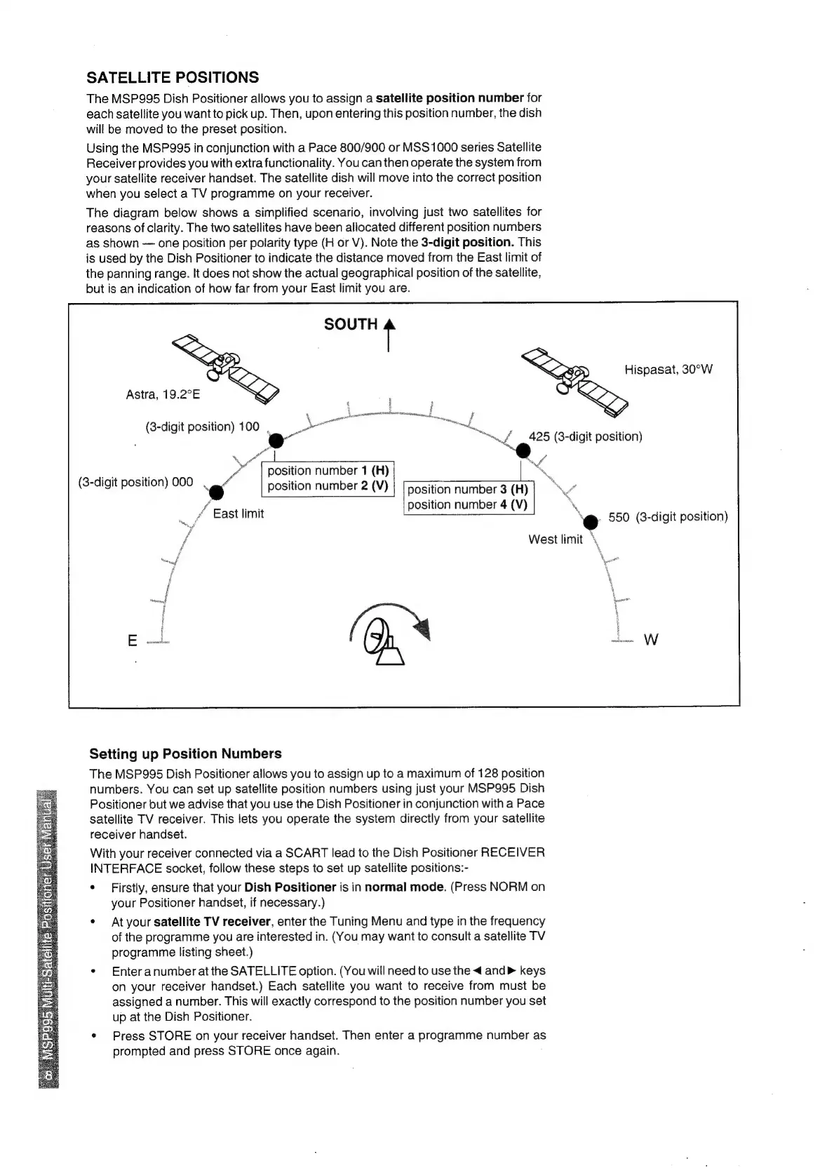 Pace MSP 995 - PROGRAMMING SATELLITE POSITIONS; Setting Up Position Numbers