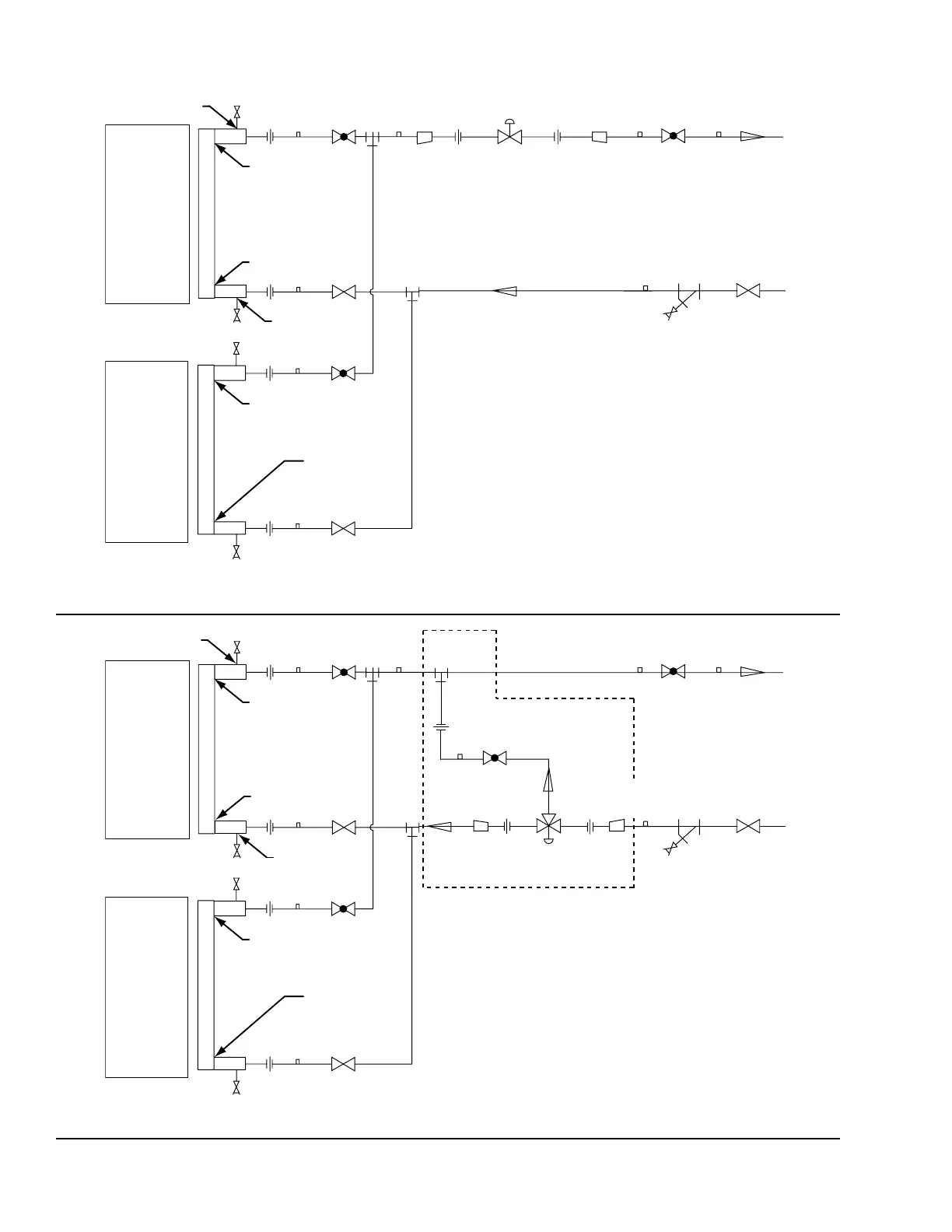Pace PAO - FIGURE 149 - Hot Water Piping with 2-Way Valve Example (Not for Construction); FIGURE 150 - Hot Water Piping with Diverting Valve Example (Not for Construction)