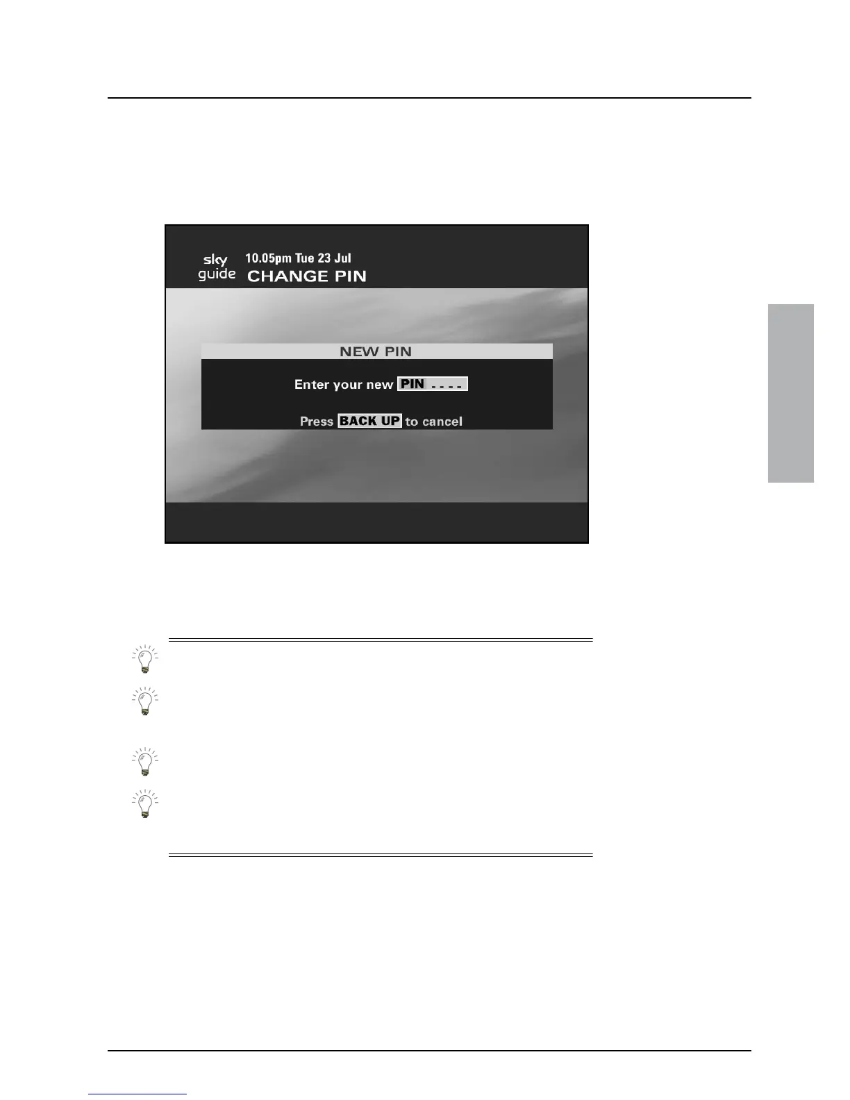 To see the Change PIN screen, highlight ‘Change PIN’ on the Parental