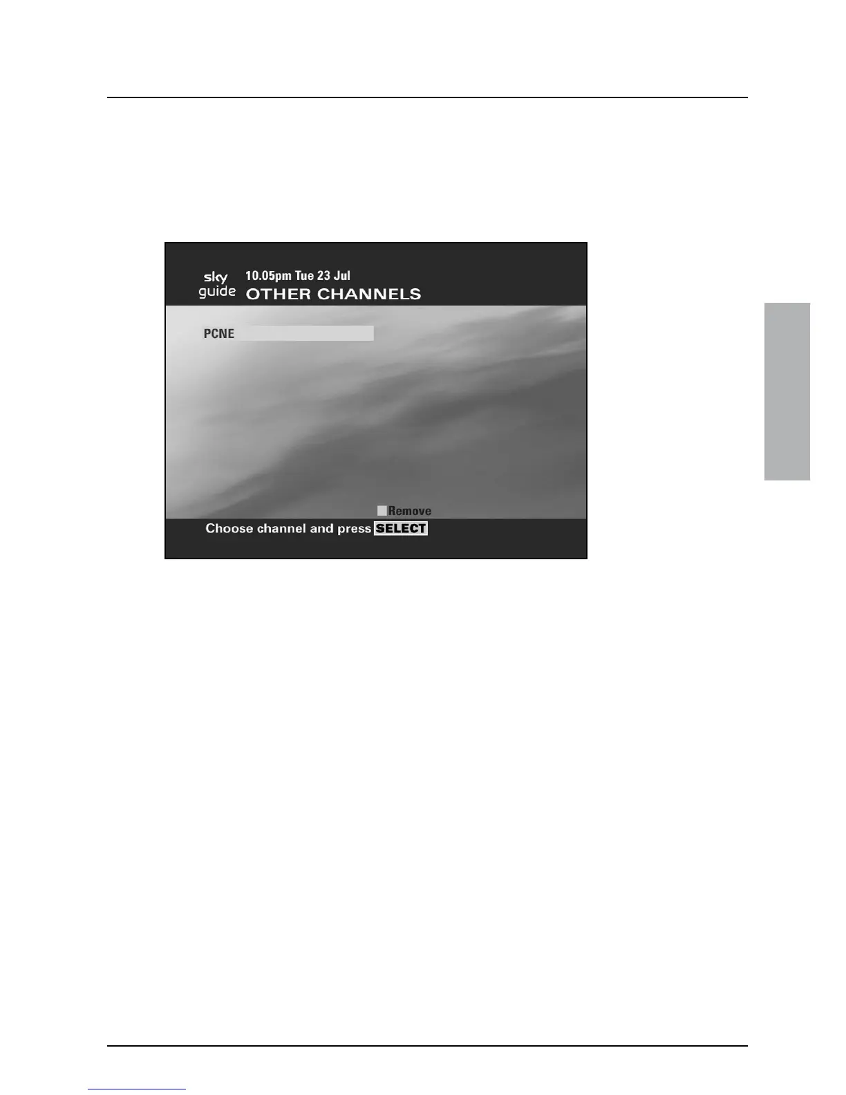 Channels’, then press select. The Other Channels list is shown on