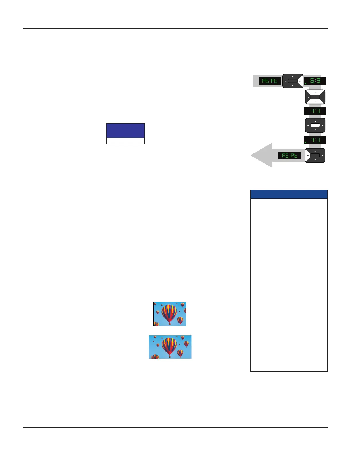 3. Press the SELECT button to confirm your choice and change to that TV Aspect Ratio.