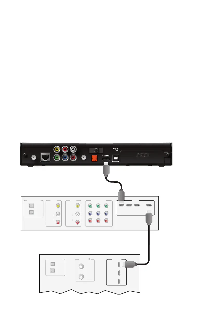 To connect the receiver to a home theater receiver using HDMI: