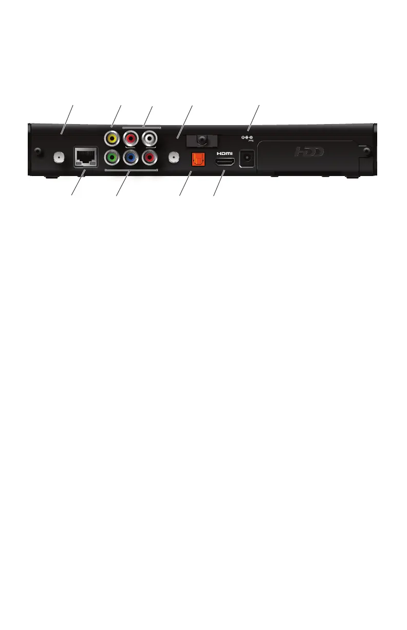 Connects the set-top box to the RF/Antenna connector on your TV or VCR (optional).