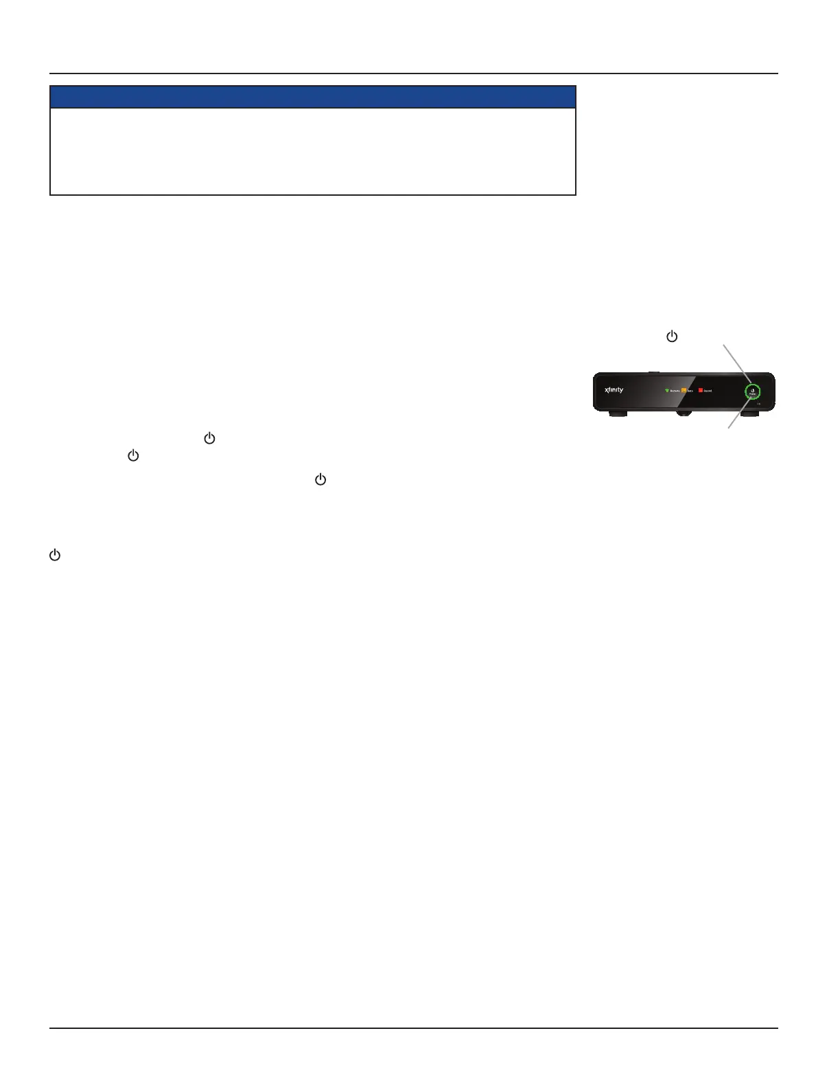 ON, if it has a switch), press the Power button on your set-top box’s front panel to turn it on. The Power