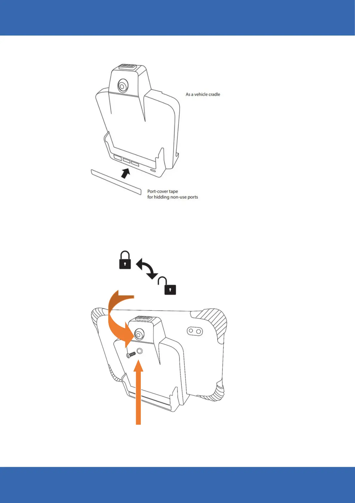 For full-feature vehicle cradle or desktop dock, the port cover tape is being used to hide
